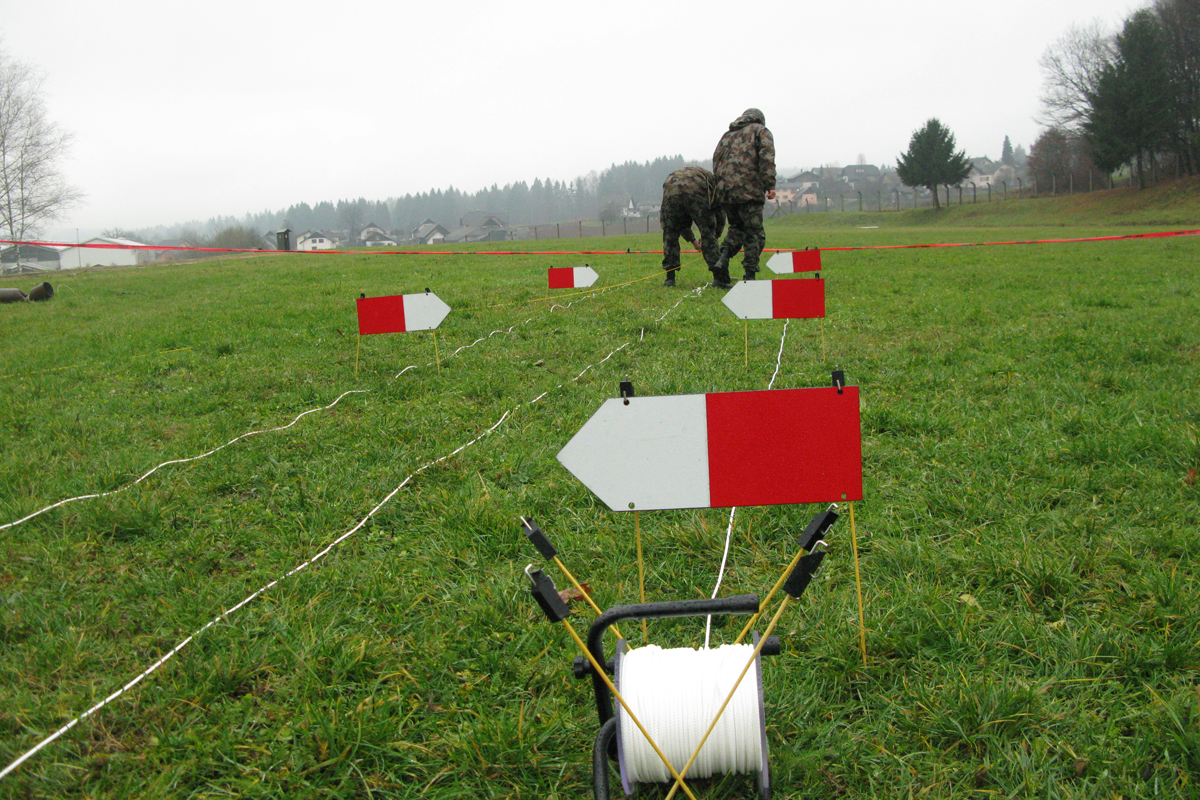 Komplet za miniranje in razminiranje se uporablja za označevanje pri izdelavi in razminiranju minskih polj.